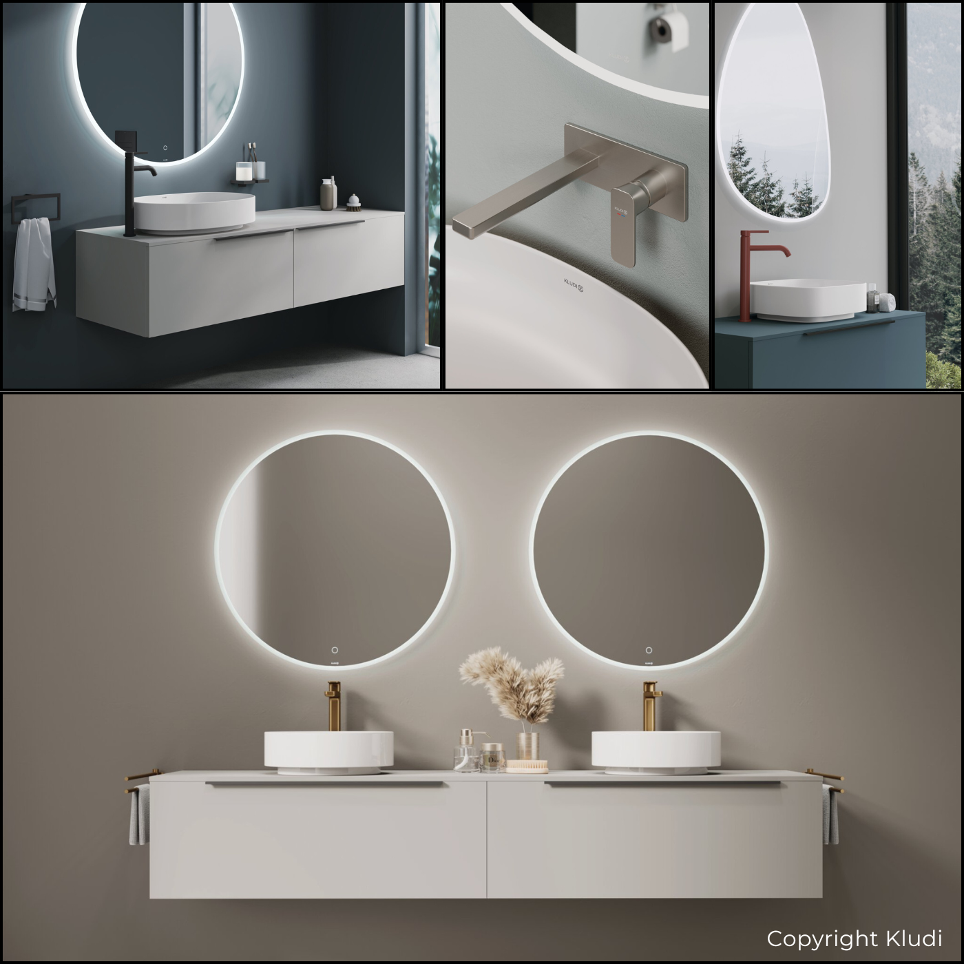 Perfekt ergänzt werden die Serien durch KLUDI Luma und Vela, die stimmige Eleganz ins Bad bringen. Luma-Spiegel schaffen mit sanfter Hintergrundbeleuchtung ein gemütliches Ambiente, während Vela-Badaccessoires mit klaren Formen und hochwertigen Materialien moderne Akzente setzen.
